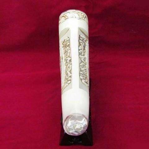 Sản phẩm Mỹ nghệ chạm khắc giả ngà voi – Bữa tối cuối cùng có hình dáng của 1 chiếc ngà voi đường kính 7cm, cong và nhọn dần về sau.
